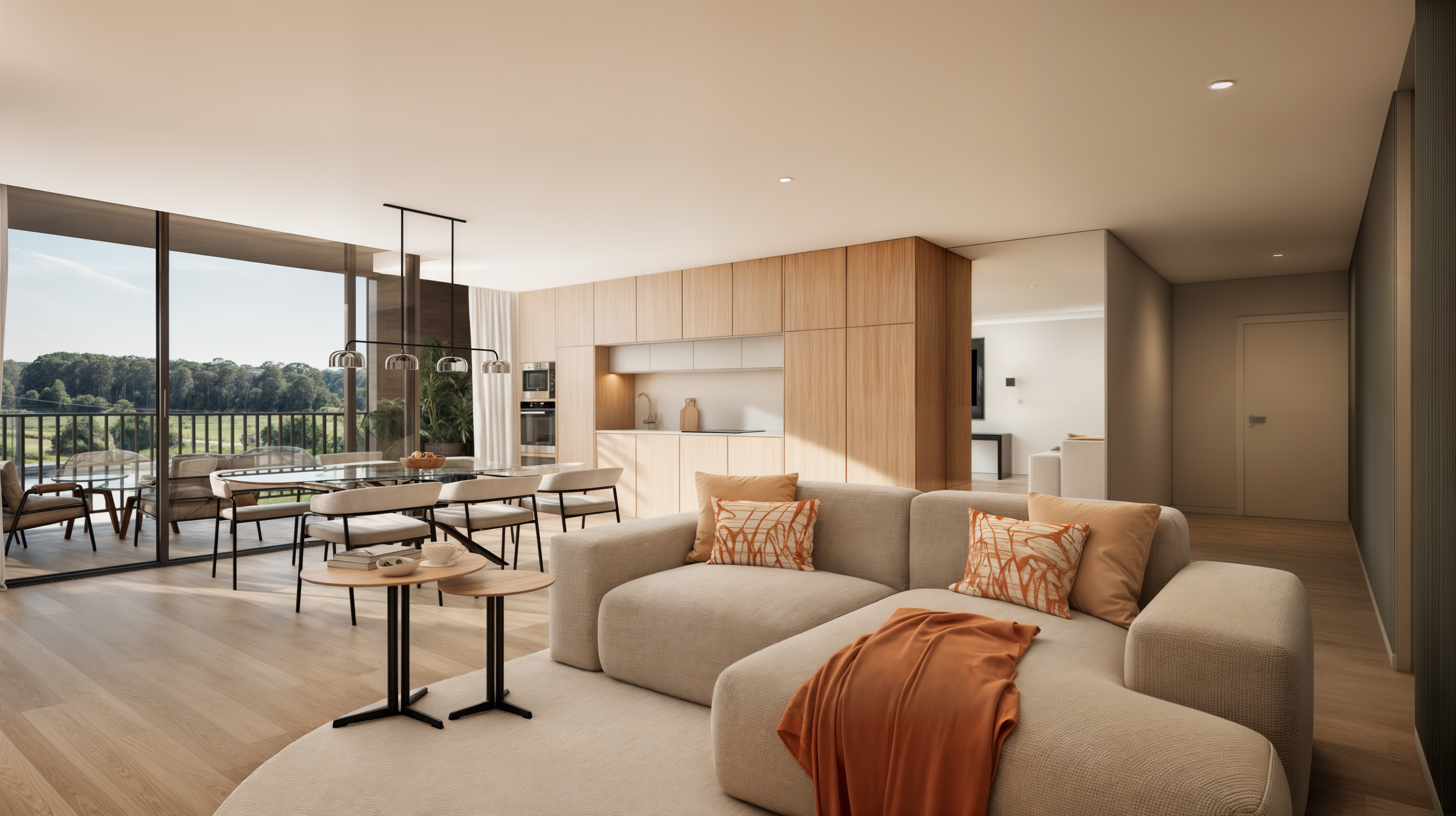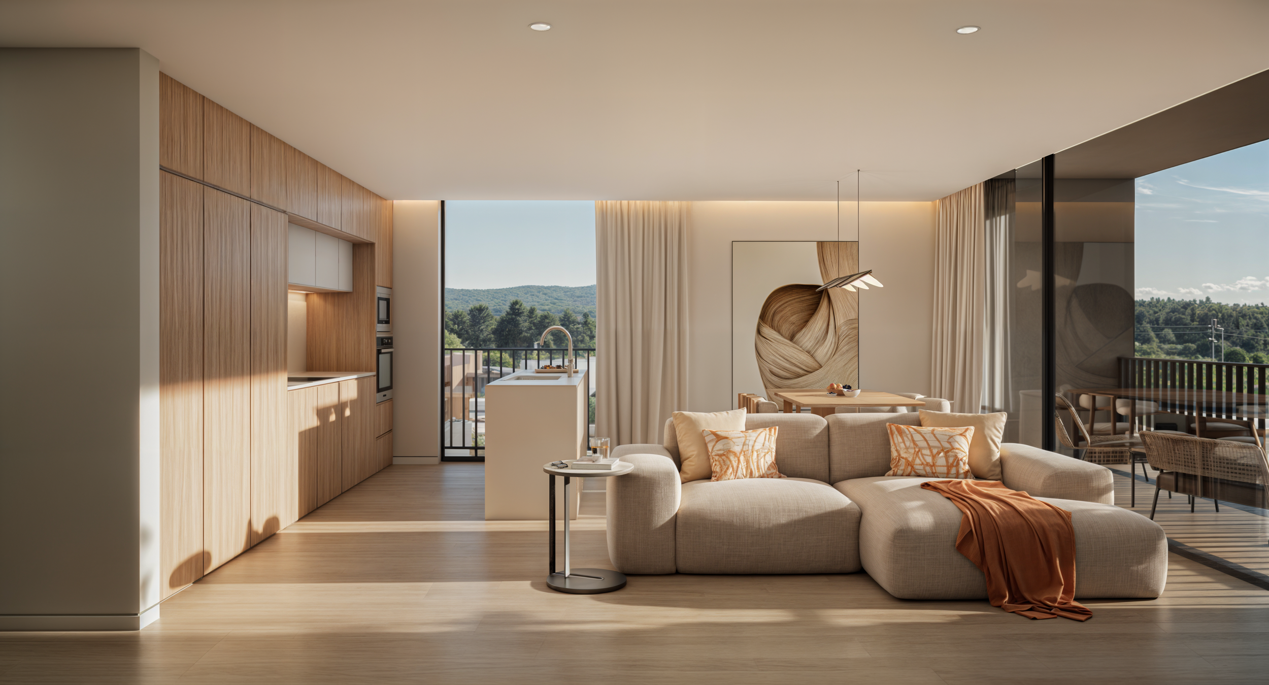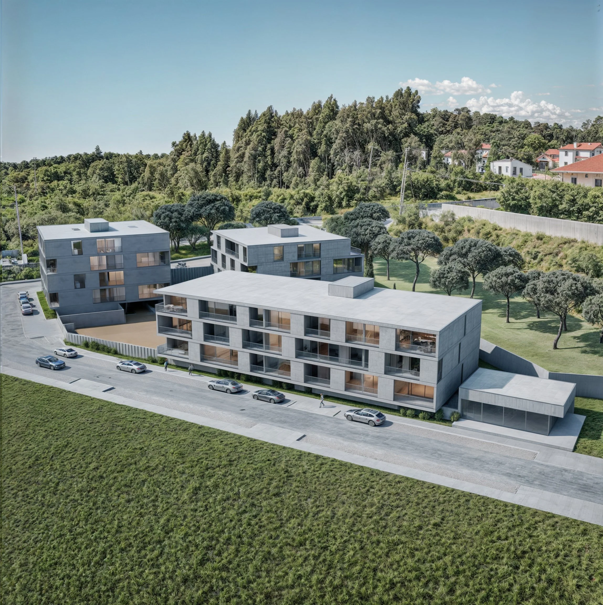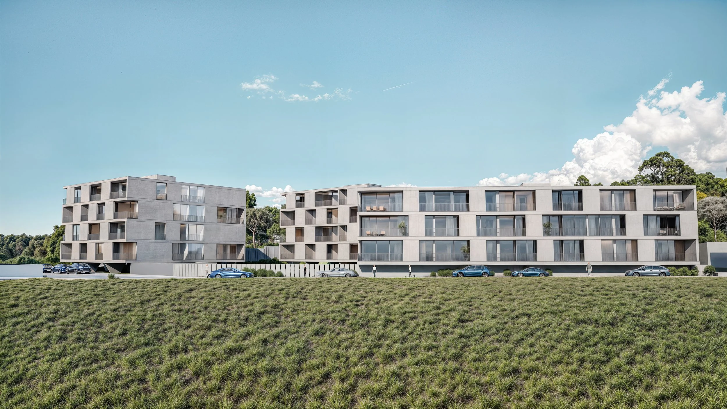 Situated on the Atlantic coastline, Almare is built for comfort and seaside serenity. This private condominium is framed by landscaped green spaces and a communal swimming pool. Each apartment features its own balcony and dedicated parking, combining everyday practicality with a sense of calm and privacy.