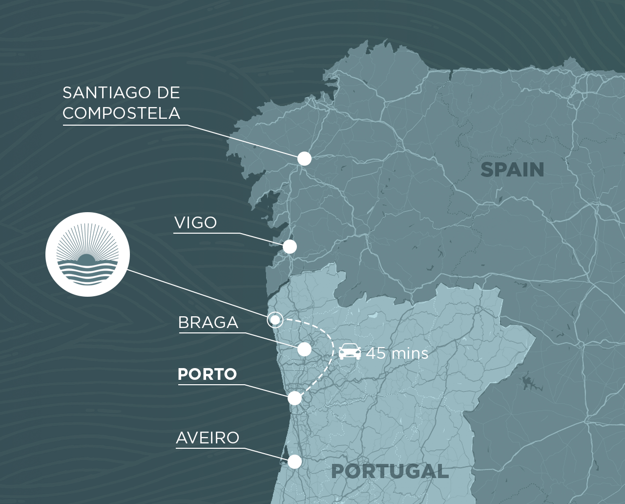 • Perfectly positioned, Almare connects you to the energy of Porto, the wider north of Portugal, and beyond. It is accessible for those flying into Portugal, and a popular stop on the famous Camino de Santiago walking route.